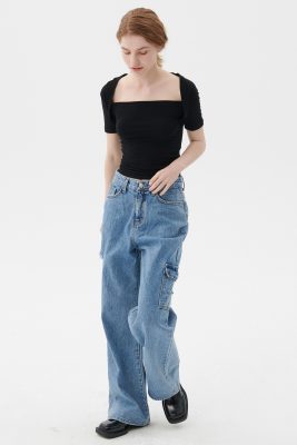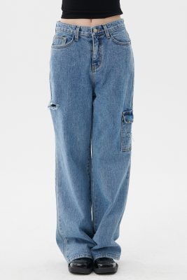 - Side cut out and cargo pocket detail